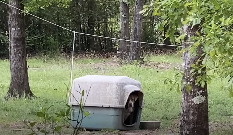 Couple Touring Empty Home See Old Doghouse In Yard — Then A Sad Face Pops Out