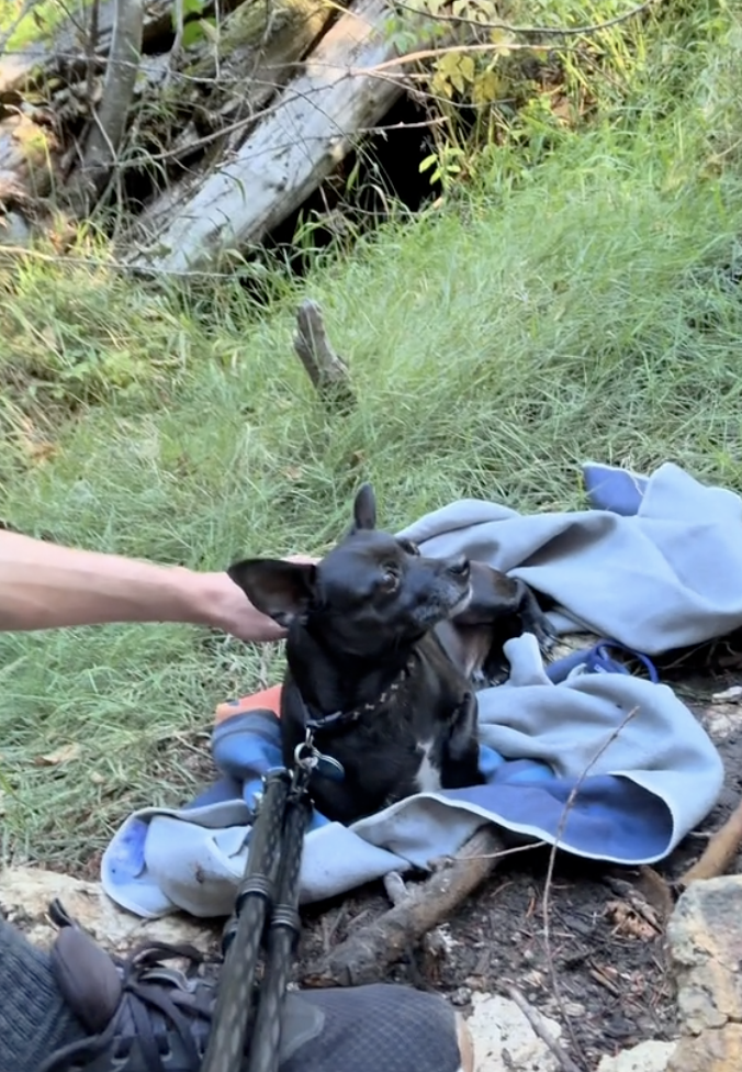 Hawkins led the dog back to the trailhead and attempted to call the number on his collar, but the service in the area was spotty and none of his calls were going through. He managed to text the dog’s owner, and shortly after, she drove up to the trailhead and collapsed in relief upon seeing her dog.